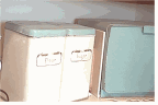 - This box was pretty plain and rough looking when my husband saved it from going to the dump. Again, a paint job and some stenciling changed it's looks drastically. Over the years it has served in a number of ways. Storing material, storing papers and now storing toys for when Podunk is here.