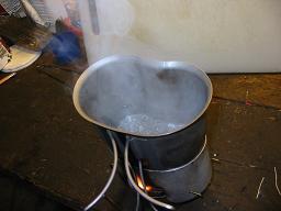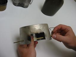 All that this modification entails is four 1/8” holes, ½ inch from the bottom of the stand. This allows two rods to go through the stand from one end to the other which creates a rack that will support the cup stand on top of the burner.