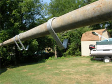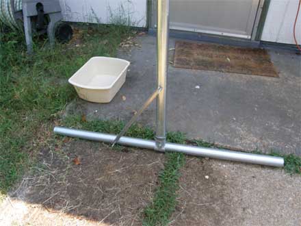 Now assemble top pipe to base footing, then once again install angle iron supports.