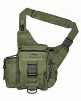 I'd been wearing a "fanny pack" for the last 4 or 5 years now, and I continually found myself wanting a better method of carrying my concealed weapon and the gear I carry on a regular basis. I was at a gun show recently and saw a display of Maxpedition Gear. After checking out a few of their bags and backpacks, I was happy to see how well made they were, as well as the variety of packs and accessories they have for them. Now I've always been of the opinion that it's BS that men can't carry a handbag in the United States without looking like a...let's say, effeminant fellow--I just have too much stuff to fit comfortably in my pockets, but I wasn't keen about looking like a member of the gay pride parade either. Maxpedition has stepped up to the plate with their versipak series--they're made like a photographer's shoulder bag, but with the ruggedness of a carpenter's bag. They accept many accessories depending on what you want to haul ! around with you. These bags are designed to go over your neck, across your torso, hanging off one side, and they can also be carried over one shoulder, which is how I tend to carry it. I settled on the "Fatboy" Versipak pictured below: