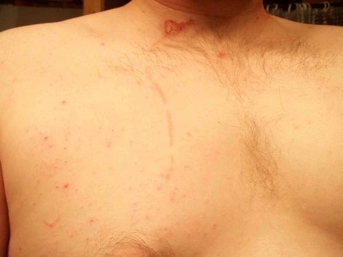 I got a bad welding hickey one day, even with everything on. I was welding overhead with a 3/32" rod and, since it takes a couple of seconds for it to get hot, I started on the starter strip of the plate so it would be hot before starting my pass on the joint. The rod is also wiggly at 14" long so right after I lit it, it wiggled and a glob of hot molten metal fell. It somehow got inside of my collar. A weld pool can be around 11,000 degrees Fahrenheit so that metal was hot. When it hit my neck you've never seen a fat boy move so fast. I threw down the electrode holder and leaned forward and started shaking. I felt it start going down. It last bounced off my gut just below my belly button before falling out of my shirt. AND THAT IS EXACTLY WHY YOU DON'T WEAR TUCKED IN SHIRTS OR PANTS WHILE WELDING!!!!! I wound up with a nasty burn on my neck and a track line all the way down my chest, a bounce on to my gut and then a nice burn before it fell out. I keep an anti-septic cream in my tool box for such mishaps.