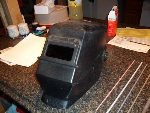 Welding is a dangerous process. There is risk of electrical shock, burns from both hot metal and ultraviolet light, eye damage and even falling material. Wearing the proper protective equipment will greatly reduce the welder's risk of injury. Steel toed boots, a leather welding jacket or a leather cape bib, jeans or other less flammable material, thick leather welding gloves, safety glasses, a welder's cap, foam ear plugs and of course, the welding helmet are what I wear. NEVER, EVER, DON'T, JUST DON'T DO IT wear fleece or flannel type clothing when welding, those microfibers will easily catch on fire and ruin your day. A flannel shirt will flash quickly and envelope your upper body in fire in about 2 seconds.
