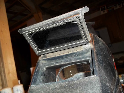 You can see how the front flips open to expose a clear cover lens. I flip it up like that for grinding and chipping and obviously flip it down to weld.