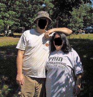 Sherrie, Duff (note her shirt) and Mongrel-------------------------------------------Mongrel has Dementor trained well :)