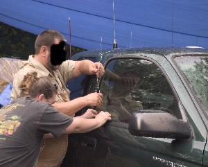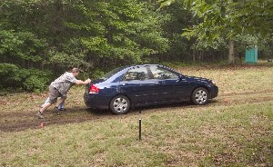 We had a few rain showers during the Pre-IC, but 10 minutes after Warlord showed up it opened up and friggin’ poured. It’s all his fault. His girlfriend must think she’s special or something considering a couple of husky Rubie men assisted her getting a car up the slippery grade.