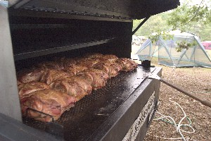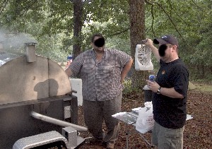 Mongrel hard at work-----------------------------He’s serious about his BBQ
