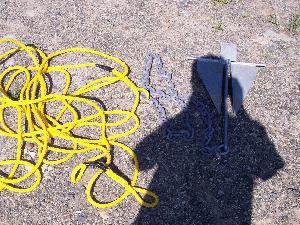 An anchor is an important item to have before getting underway on a boat. There are several different styles of them. Mine is a Danforth. Having a good anchor line is critical because if it parts, you’ve lost your anchor and you’re adrift again. A good rule of thumb is, your line length should be 3 times the depth of the water you’re in.