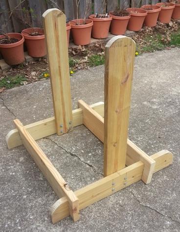 Before cutting the vertical legs, decide the correct height for your axel. The correct height is high enough so the barrel rotates freely but not so high that it's unstable. Plan the vertical leg to be tall enough to have at least two to three inches above the axel. My legs are 36" tall. Stabilizers are also 36" long.