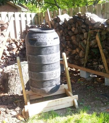 A rotating composter takes up a small footprint in a small garden and spinning it is less work than pitch forking a big pile. But if you're thinking of buying a rotating composter be prepared to shell out some bucks 'cause they are not cheap. I elected to DIY one.