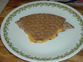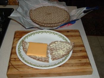 I spread some low fat margarine on a couple of pieces and added two slices of cheese.