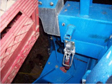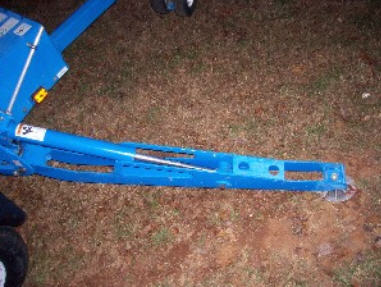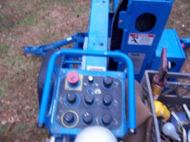 Make sure the red STOP button is pulled up. Next to that is a small knob, which is speed control. You can select how fast you want the machine to respond to the controls. Notice the yellow and blue-circled buttons. Yellow is downward functions and blue is upward functions. They are also used to select which way you want the boom to rotate. The upper boom also extends out about 10 feet. Simply hold the blue button and push the boom in/out and out it goes. To retract it hold the yellow and hold the boom in/out button and in it goes. Very simple thing to operate….and yes…there are even pictures! :o)