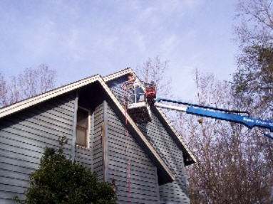 Sierra went and got a Genie cherry picker figuring we could use it to paint the house, trim tree limbs and finish the back of his garage.