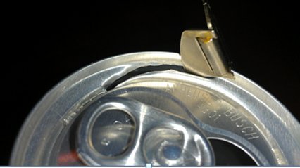 Gently press along the score line and the metal will begin to crack. This may be aided by use of the tip of your knife. Slowly walk the crack around the circumference of the can. Be careful not to crease it.