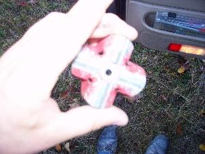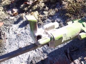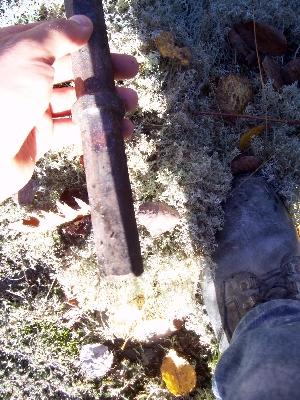 Today we had a slight problem. The brand new bit and a 4' shaft got ruined. The threads on the shaft broke while drilling. We managed to recover the FUBAR'd bit so the hole can still be used. We'll find out who's really responsible for the rental company's shaft breaking. We think they should be. So when you get frustrated because it's a Sunday morning with no rental places open and you're on top of a mountain with no extra bits (rental place was out of them) things tend to get aggravating...as you can see.