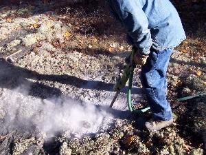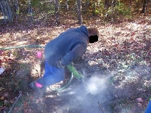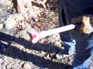 NOTE: Eye and ear protection is a MUST when using a jackhammer. They are loud and when blowing down the hole, rock fragments come flying out.