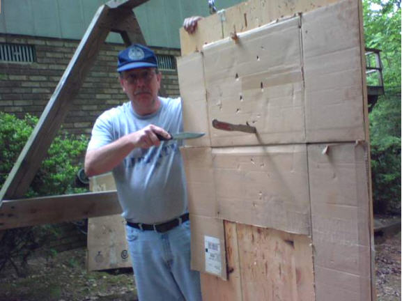 Don’t forget the safety aspect of this sport. Where glasses or goggles. Knives bounce back when you miss. Most of the times they will not make it back too far. There are exceptions. Keep a first aid kit handy. Your knives do not need to be very sharp for target practice, just pointy. Do not throw from a blade hold with the edge in, even if it is dull.
