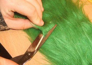 Step one select a color of fur and snip with you’re scissors a half of a finger length of fur off.