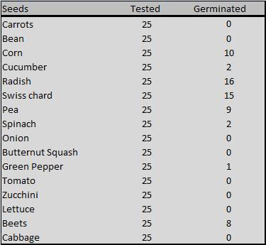Back in the good ‘ol days of Y2K prepping I purchased a couple of sealed #10 cans of non-hybred seeds from Nitro Pak. After Y2K and a couple of moves I completely forgot about them and they languished in closets and garages for 11 years. Temperature in the house is usually around 75 but in the garage it probably got well into the 90’s or even 100s. Doom on me and the seeds.