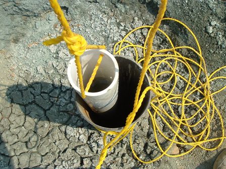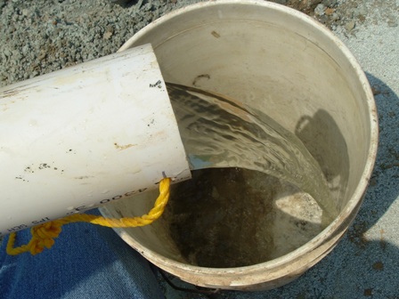 Water, water everywhere, but not a drop to drink. More precisely, water in the new drilled well but none to mix thin set mortar with. The well drilling company hadn’t put the pump, pipe or electrical cable down the hole yet, so I decided to make a well bucket out of PVC pipe and an old inner tube so I could get some water. This well bucket will work with any drilled well at least 4” in diameter. The capacity of the bucket depends on how long you make the main pipe, I made mine a little over 3’ long which gives me about 1.5 gallons every time I raise it out of the well.
