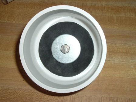 The heart of this gizmo is the valve at the bottom of the bucket and this is all you need to build one. I drilled holes in a 3” end cap and then cut a piece of inner tube rubber large enough to cover the holes but small enough so it would still be able to move freely once the cap was on the bucket pipe.