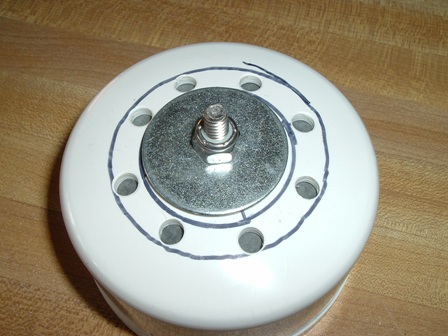 From the inside the valve looks like this. Notice the rubber flapper is covering the holes in the cap but is still a good way from the edge.