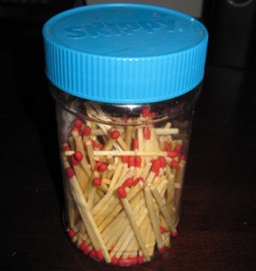 For numerous reasons, and in several places, I keep wooden matches. Over time and use, the boxes tend to break down before I am finished using all the matches. Once the box breaks down, the matches tend to wander off. Also, being made of paper, the box can be damaged by water. Too much water and the matches are useless. So I started storing my matches in peanut butter jars.