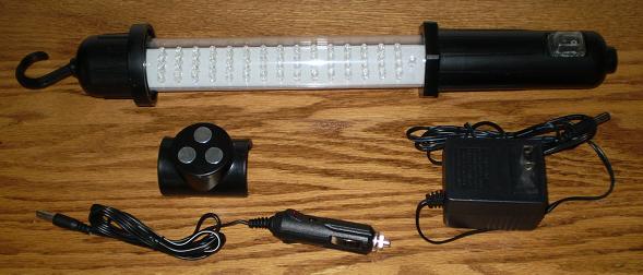 I have been looking at this light for some time and I decided to give it a try as an addition to my standard drop light when I work at night of on my vehicles or for many other uses. This is a cool light so when you need light in a tight place it will not burn your skin. This light does better than I expected providing a good light. In the picture below you can see that even though that the LEDs are in a long pattern it still provides a spot for tight locations as you can see on my door from 5" away at night. It is very light in weight - about a pound or so - and with the slip on magnetic adapter can hold in many positions and is fairly strong.