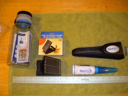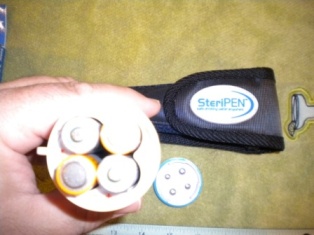 I had a problem with how to safely sanitize drinking water while on the move. The solution I found is with a Steripen portable UV lamp, 8 NiMh batteries (2 is 1) and a small solar charger.