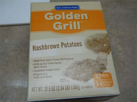 We first discovered the Golden Grill dehydrated Hash brown Potatoes a few years back at Sams Club. They are easy to fix and taste great. Only problem was, about a year ago, we were no longer able to find them locally...