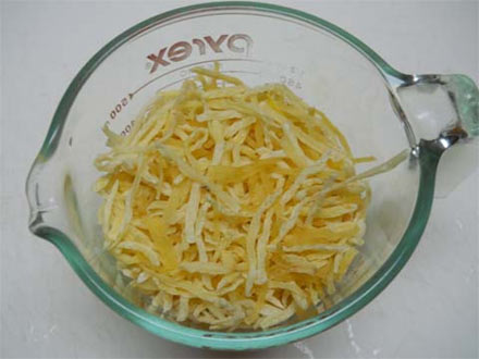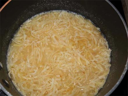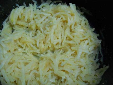 After 30 minutes you can see that all the water is absorbed and the hash browns are ready to cook. I fry mine with butter, and black pepper...