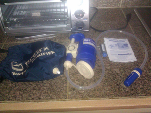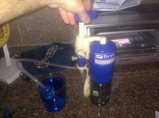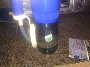 This device is designed to screw onto the opening of two sizes of water bottle and adapters are available (I plan to buy them.) The included sizes on the base device fit a Nalgene/Camelback or a Gatorade bottle. For the test, I used one of the kids' Bubba bottles.