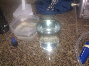 I performed a bench and food dye check, followed by a chlorinated water backflush. The dye test was very satisfactory. No dye was visible in the effluent, which had no taste or odor. The feedwater was tapwater, which usually has a faint chlorine odor. None was present in the effluent. The pump is double acting and requires very little effort. Action is smooth.