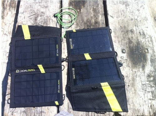 Earlier in the year, I picked up two Goal Zero Nomad Panels. These are foldable solar panels that are 7 watts each. Up to 4 panels can be daisy chained together. Goal Zero makes a variety of different portable solar panels setup that is geared towards the outdoor enthusiasts. Be it camping, a day on the water, a hike, etc… On a per watt basis, they are really expensive. It would be really cost prohibitive buying them to run your house off of them. However, on the flip side, they are really portable. Goal Zero also makes a variety of different battery/power packs that can be charged. These battery/power packs can then be used to run a variety of different items or to even charge them.