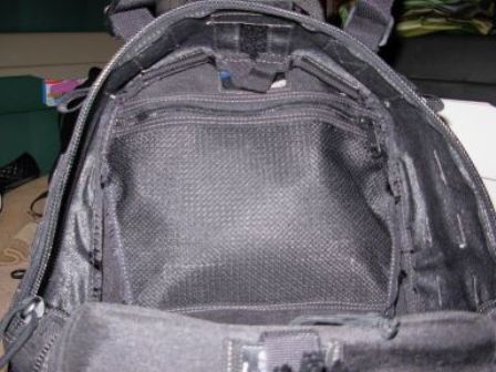 Right against your back there is another compartment this could be for your Hydra pack more your side arm this has the ability to Velcro your weapon inside. I also see the ability to put in a Kevlar plate.