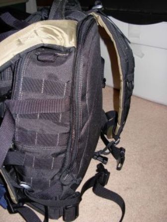 The ability to add extra packs or side compartments to it is very simple and has the ability to travel through the woods and think Bush and still stay close and not getting any hangups and so that if you have to move fast through the woods and you will be able to. To install a hydra pack You unzipped the back pocket line you to access the compartment I can put in a 2 L hydro-pack . It also has 2 drainage holes. I installed a new first aid pack on the outside this only took me seconds to slide through the Hook & Loops