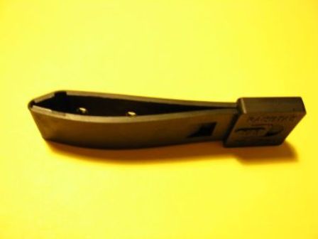 He folded over and slide it through to lock it in place but before you do this you attach to your web gear and then lock it.