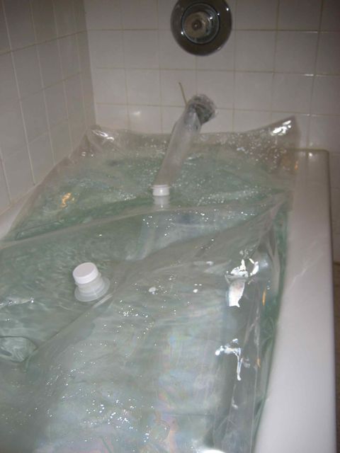 Operation is quick and simple. Remove the WaterB.O.B. from it’s packaging, lay it out flat in the tub, attach the fill spout to your tub’s water faucet, and turn the water on. When the bladder is full, turn off the water and replace the screw on cap in place of the filler neck. Done.