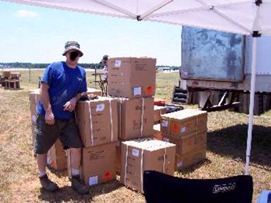 The boxes I’m leaning on contain 25 3” shells in mortars and will fire for 30 seconds. Some of these will be in the finale’. Some are all color while others are Titanium Salutes, which will make *some* noise. He he. There will be several other shells such as 8, 10 & 12” going up at the same time also.